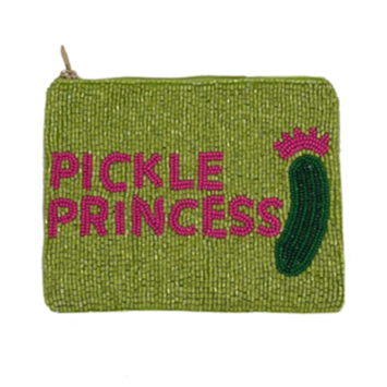 Looking for a cute, unique, and/or funny gift? This delightful Pickle Princess coin purse is beaded both front and back. It's larger than your traditional seed bead coin pouch measuring at approximately 6 x 5 inches (sizing will slightly vary due to the handmade nature of this item).