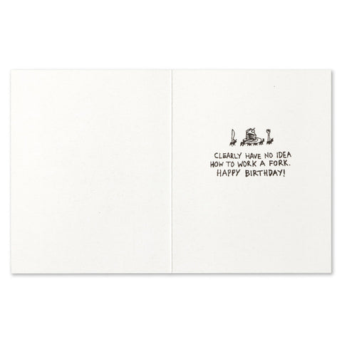 Inside: Clearly had no idea how to work a fork. Happy Birthday!