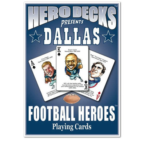 Here's a fun, poker-sized deck of playing cards featuring 52 of the greatest players in Dallas Cowboys history. Each card has an illustration and a bit of trivia on a different football hero. Score a touchdown with this fun deck!Where do you ship to?