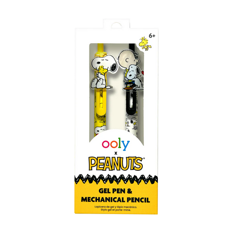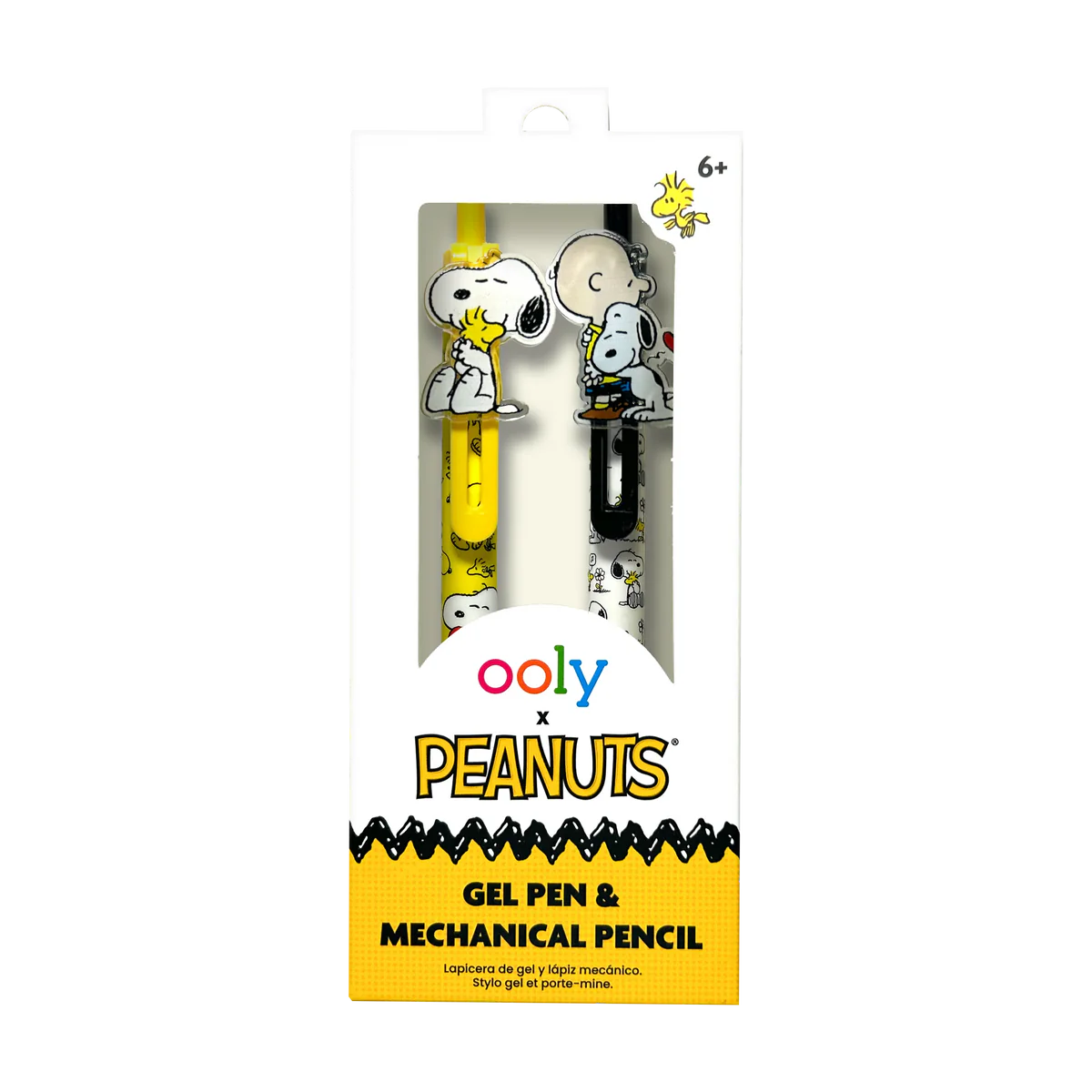 Write, doodle, and dream big with this Peanuts Gel Pen & Mechanical Pencil Set! This fun combo features a smooth black gel ink Charlie Brown gel pen and a mechanical (and refillable!) Snoopy mechanical pencil, both topped with acrylic character clips!
