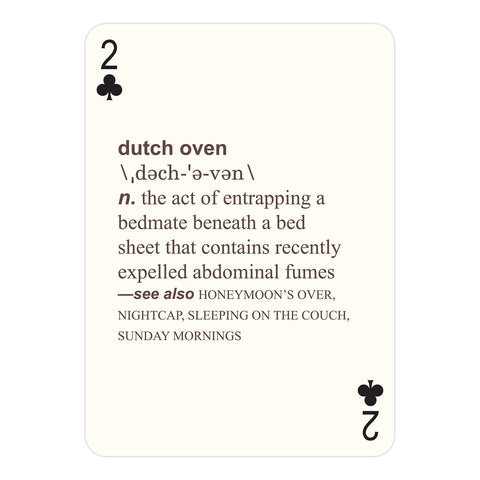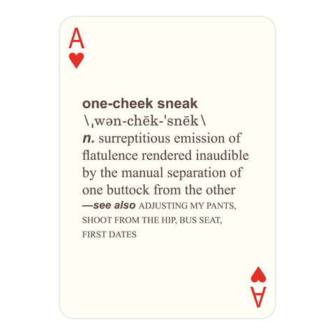A deck of playing cards that also defines 50 types of farts? That’s right. This deck is beautifully designed, meticulously researched, and laugh-out-loud funny—and a totally legit card deck. Kinda gives new meaning to the term "royal flush," doesn't it?