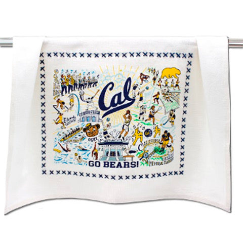 This original Berkeley UC Athletic design is silk-screened, then framed with a hand embroidered border on a 100% cotton dish towel. Delightfully presented in a fab organdy re-usable pouch!