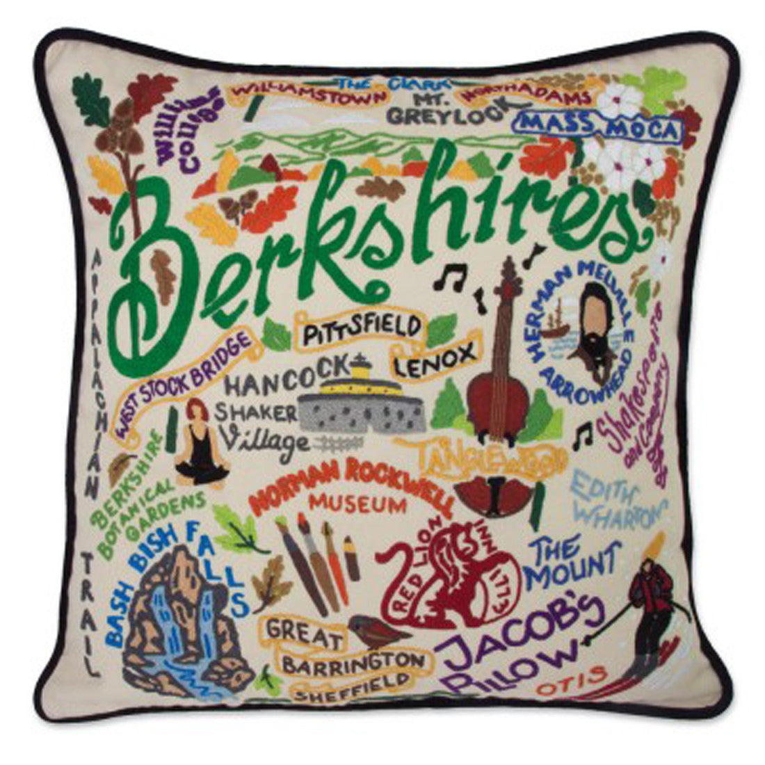 This Berkshires pillow is a delightful keepsake for remembering where you came from, where you've been, where you are, and where you'd like to go! Great for gift giving, or to adorn your own comfy, cozy couch. Each and every pillow is entirely embroidered by hand, and is finished with velvet piping around the edges.