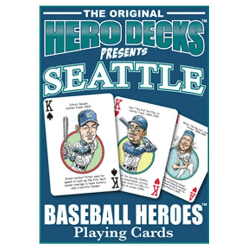 Here's a fun, poker-sized deck of playing cards featuring 52 of the greatest players in Seattle Mariners history. Each card has an illustration and a bit of trivia on a different Seattle Mariners baseball hero. Batter's up!Where do you ship to?