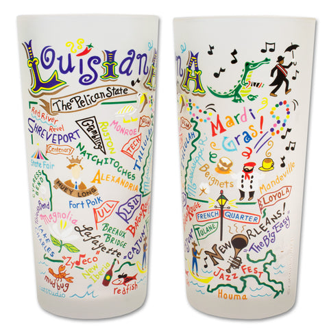 These fun and fabulous drinking glasses are a great way to commemorate where you were born, where you live, and where you're going! Each 15 oz. tumbler shows local landmarks in rich, vibrant colors. Dishwasher safe.State of Louisiana Frosted Glass Tumbler Reviews...