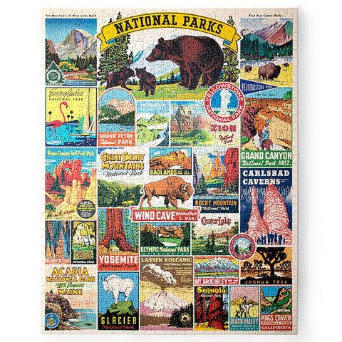 This beautiful 1000 piece jigsaw puzzle features Cavallini’s National Parks Decorative wrap, a collage of vintage National Parks logos and designs. The puzzle is packaged in a 10 inch long cardboard tube, with puzzle pieces safely stored in a muslin bag inside. Finished puzzle measures 22 by 28 inches.Where do you ship to?