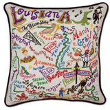 This New Orleans pillow is a delightful keepsake for remembering where you came from, where you've been, where you are, and where you'd like to go! Great for gift giving, or to adorn your own comfy, cozy couch. Each and every pillow is entirely embroidered by hand, and is finished with velvet piping around the edges.