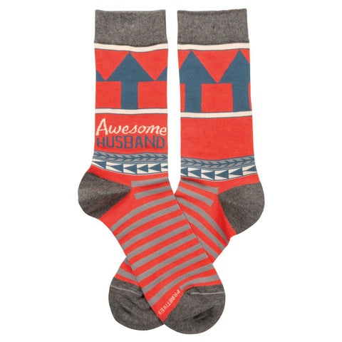These colorful socks feature woven designs with coordinating "Awesome Husband" sentiment. Cotton, nylon, spandex. One size fits most.