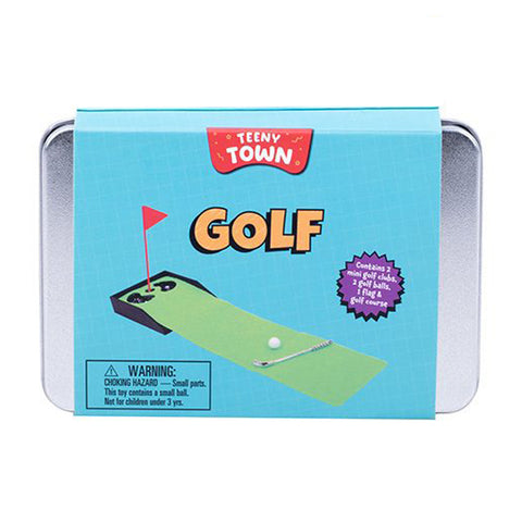 Tee up and get ready for a hole-in-one with Teeny Town Golf! This miniature golf set allows you to enjoy the excitement of the fairway in a compact and novelty format. Set up the tiny obstacles and navigate your way through the challenging holes using the included mini golf putter and ball.